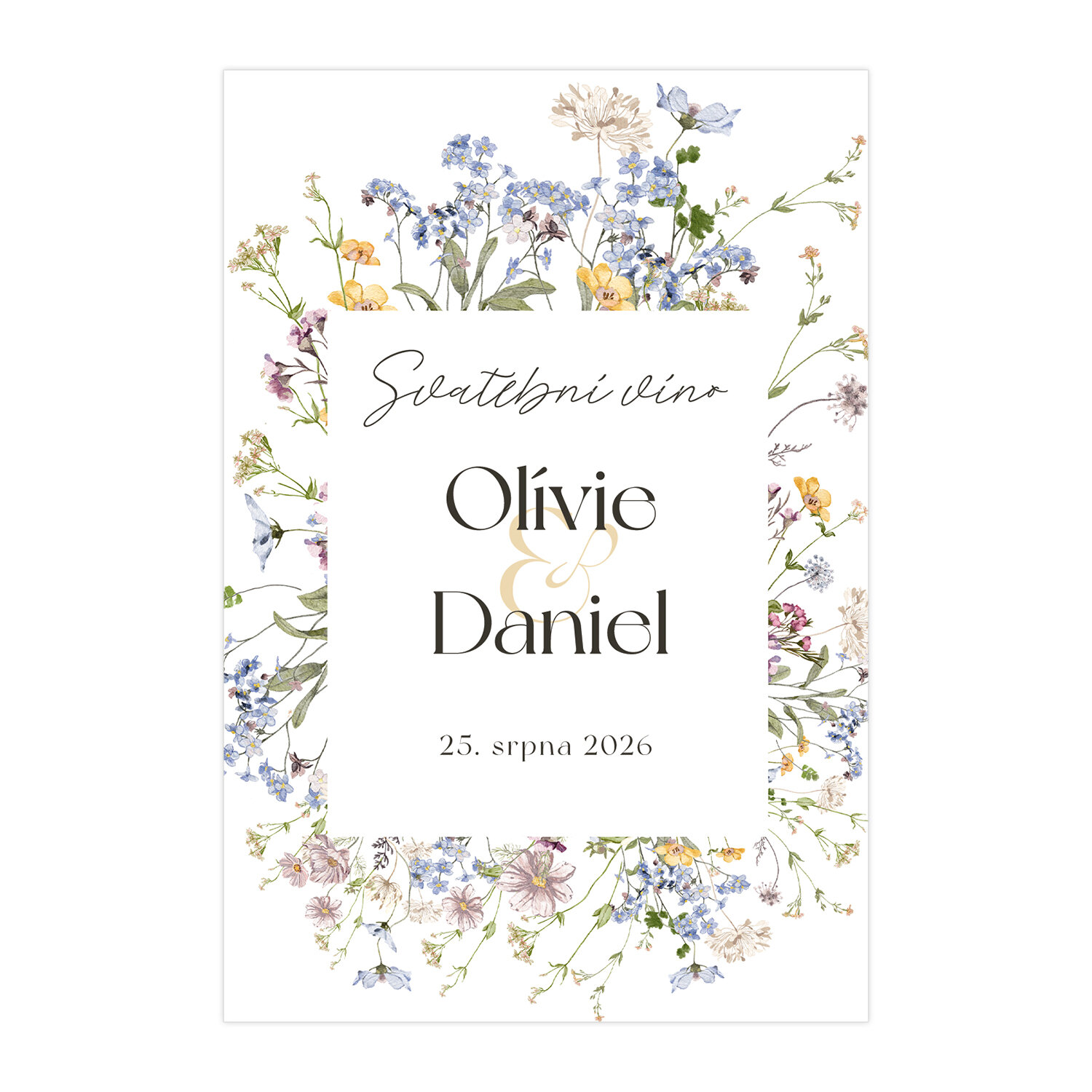 Etiketa na láhev se svatebním vínem či slivovicí v designu svatebního oznámení č. 358