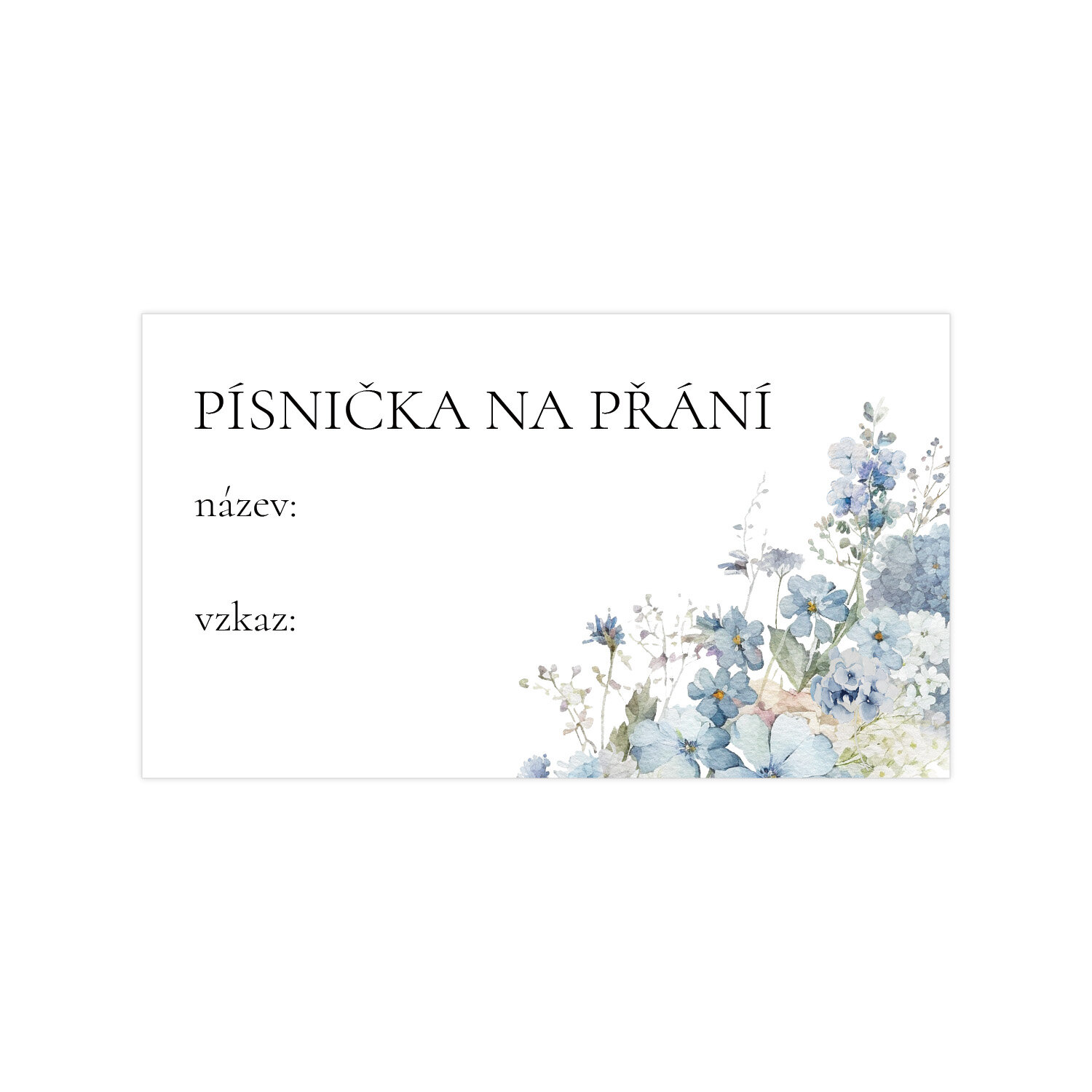 Chcete hostům na svatbě či oslavě dopřát možnost nechat si zahrát písničku na přání? Hosté napíší na kartičku svého oblíbeného interpreta či konkrétní song i se vzkazem a odevzdají ji na určené místo. Budete tak mít jistotu, že se na jejich hudební přání nezapomene. Tuto kartičku v motivu č. 355 kromě vás navíc ocení i každý správný DJ!