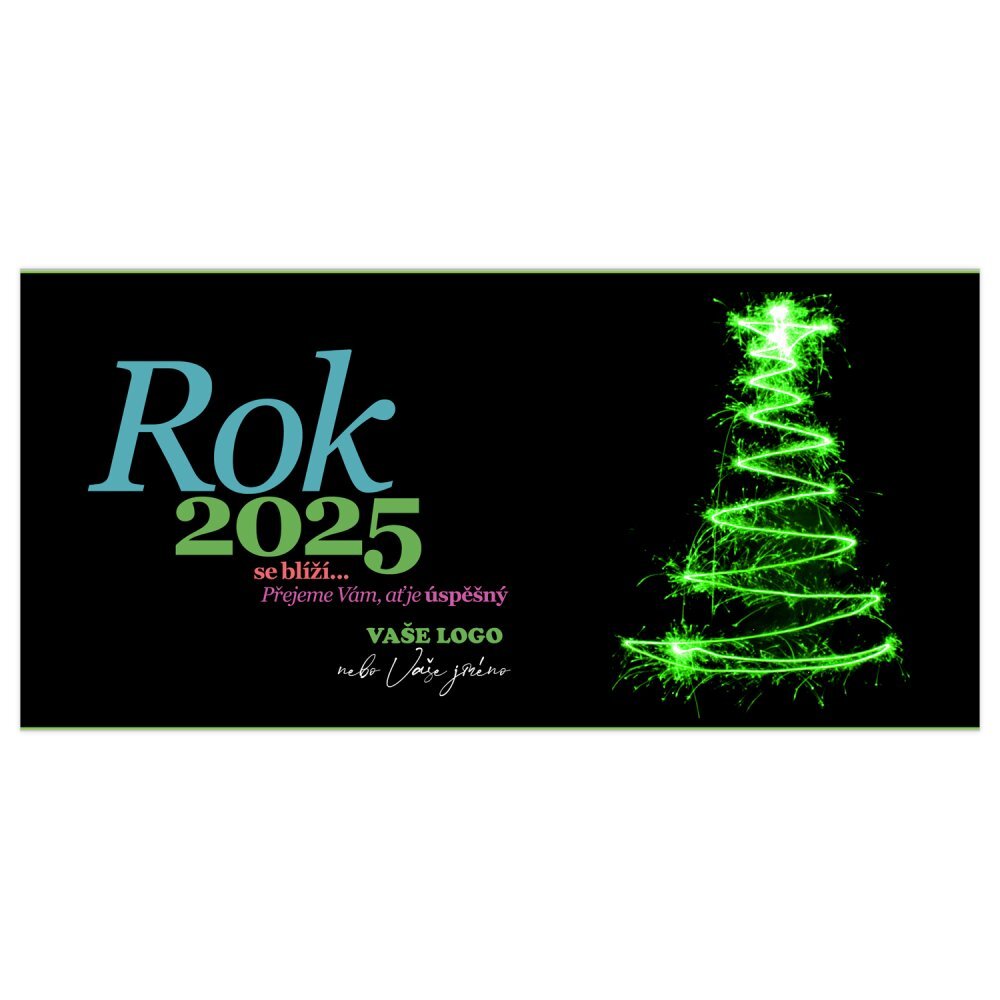 Černá novoročenka se svítivým vánočním stromečkem okamžitě nasměruje myšlenky na velkolepé silvestrovské oslavy plné radosti a veselí. Už aby to tu bylo! Připomeňte všem svým blízkým a kolegům, že i v tyto krásné svátky jste na ně nezapomněli.
