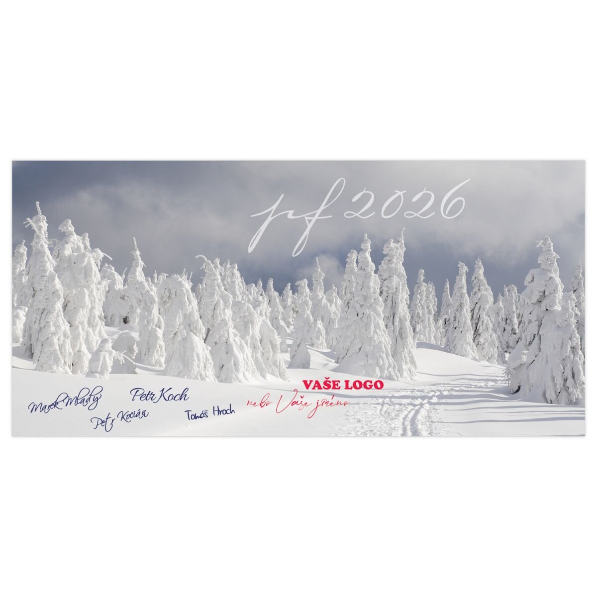 Firemní novoročenka s krajinou pod sněhem může být stylovou pozvánkou na zimní teambuilding, ale stejně dobře zapůsobí i jako osobní vánoční přání.