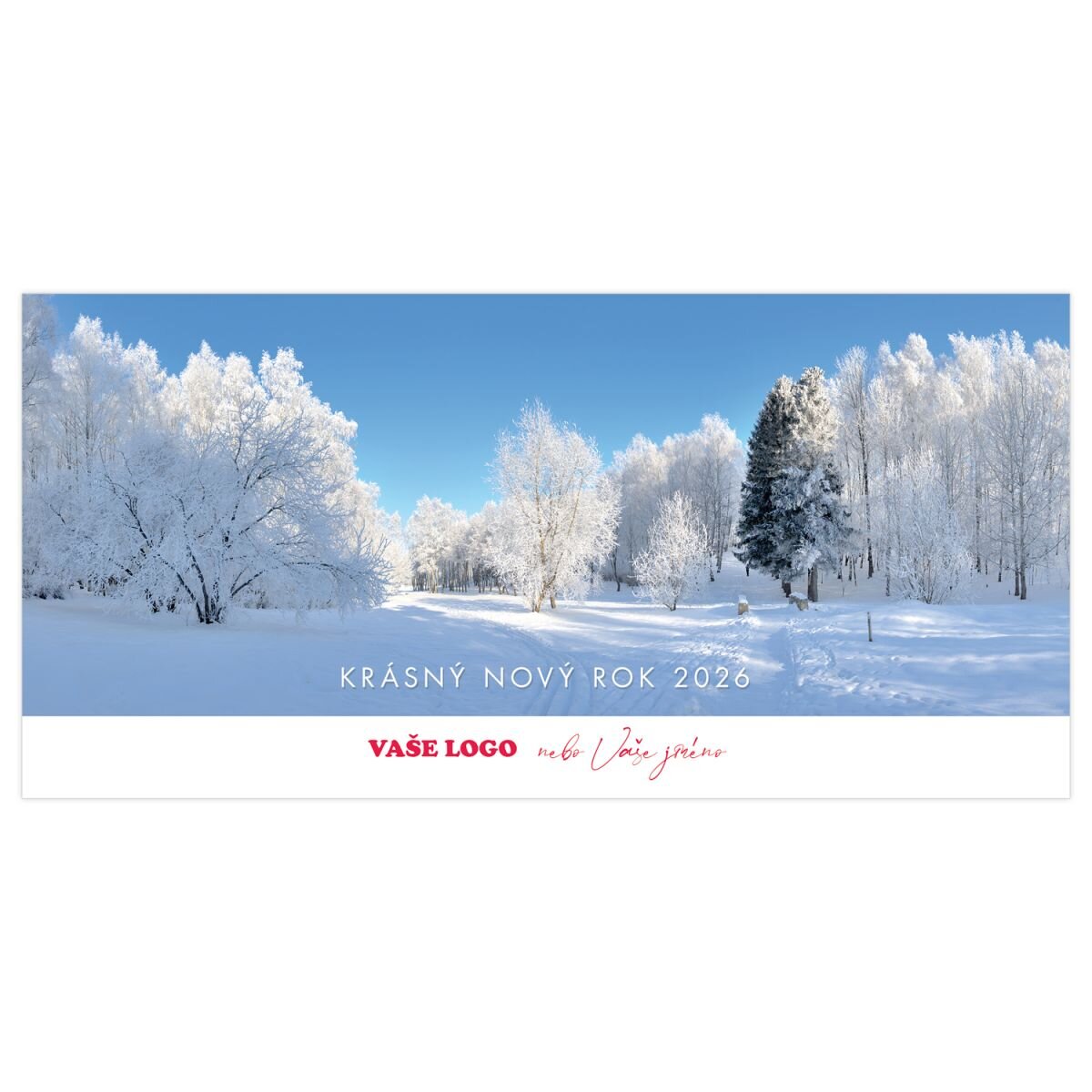 Nádherné novoroční přání, které skvěle ukazuje krásu proměn ročního období. Novoročence s krajinou zapadanou zářivě bílým sněhem už chybí jen vaše osobní přání