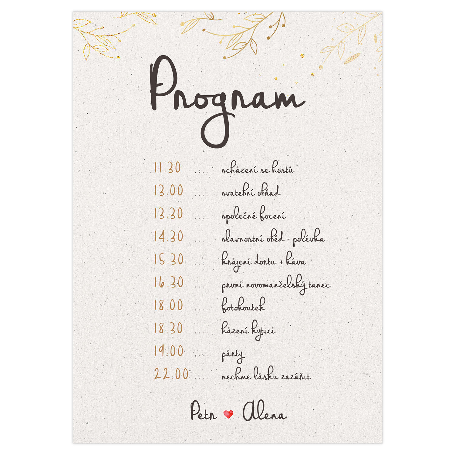 Svatební program dne 330 ve stejném stylu jako vaše svatební pozvánka a další svatební tiskoviny