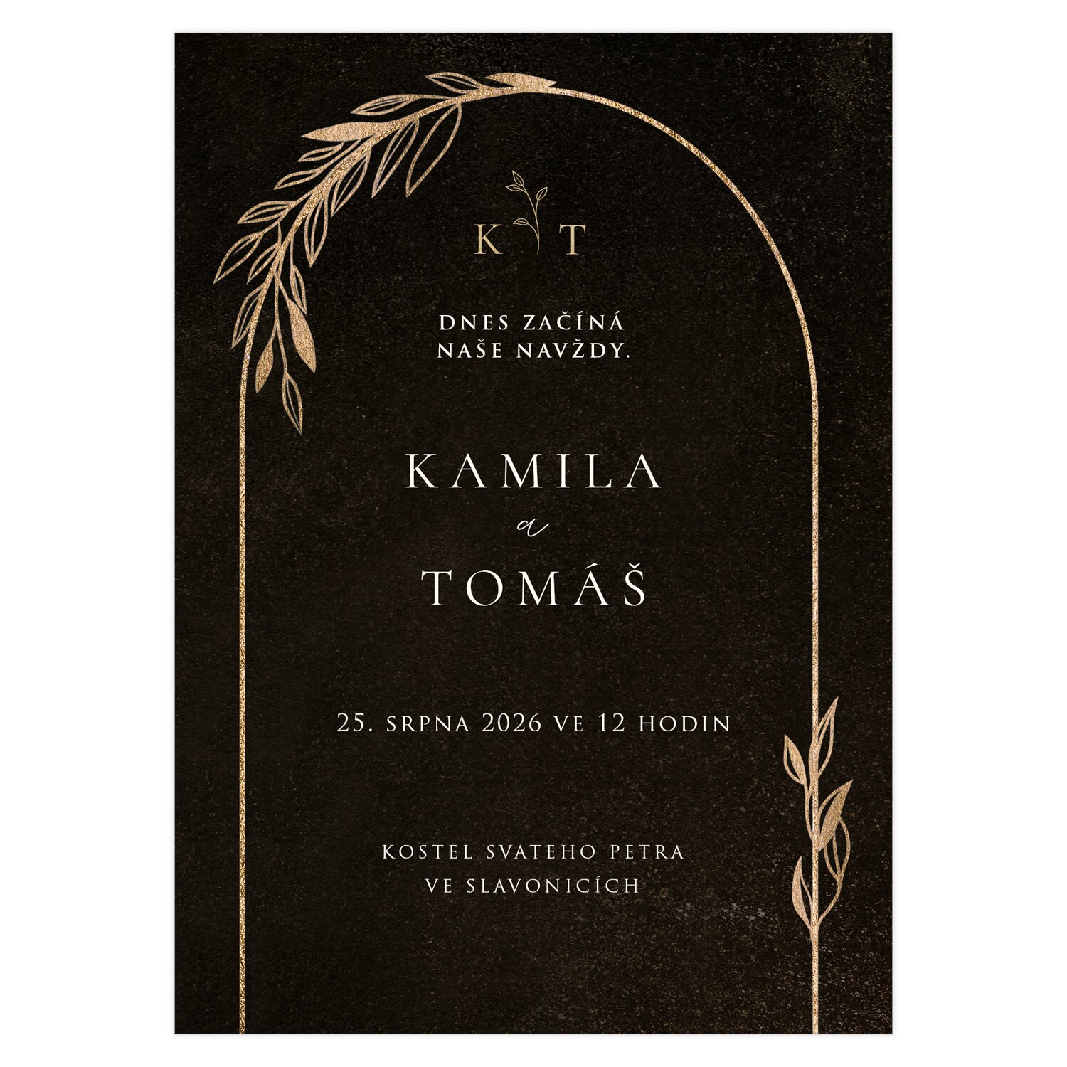 decentní a stylové oznámení v elegantním zlatém provedení, ideální pro páry, které chtějí působit slavnostně a nadčasově.